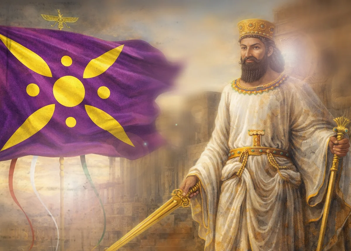 حتی در آثار ملل دیگر هم درفش مربع شکل هخامنشیان آمده است.